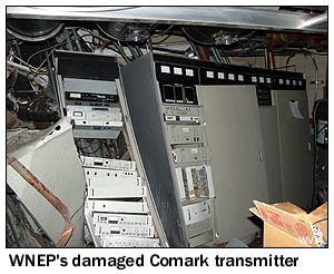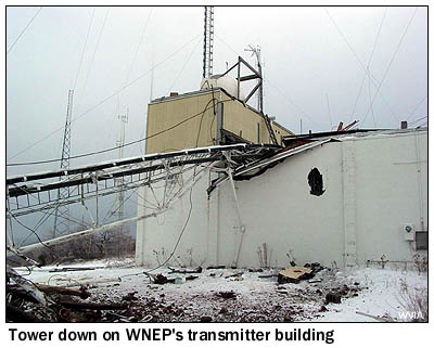 The WNEP tower fell on the station's transmitter building,