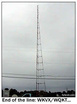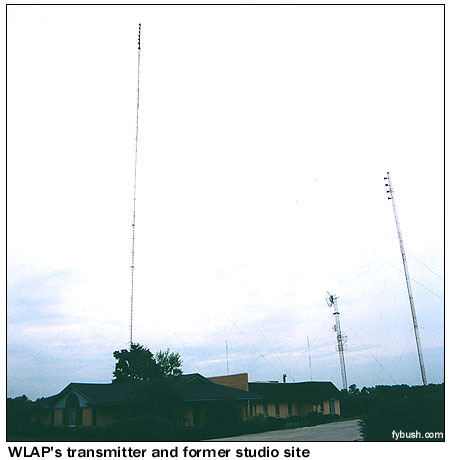 We don't find the studios of Danville-licensed WDKY (Channel 56) around the corner, but we did see the Fox affiliate's newscast the night before. One more stop finishes Lexington for us: north of town on Russell Cave Road, the four towers of WLAP send out 5000 watts by day, 1000 watts by night in the same cloverleaf pattern. WMXL and WKQQ both transmit from here as well; you can see their antennas in the photo at the top of the page, with both sharing the antenna on the tall tower as their primary and the one on the shorter tower as their auxiliary. And with gray skies turning to heavy rain, the first of the trip, we point the car west on Kentucky 1973 and turn north on I-75 to begin the long drive home.