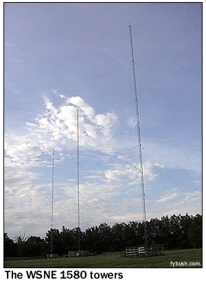 The rain keeps falling as we head north again on I-75, turning off at the Tylersville Road exit to rectify a big gap in Garrett's tower-hunting life log with a stop to admire what may be the finest AM transmitter site in America: the big Blaw-Knox diamond tower of "The Big One," WLW. I had been there once before (and you'll read about that 1998 visit in next week's Site of the Week), but Garrett had seen the site only in photographs. And after several minutes in the drizzle paying our respects to this icon of towerness (yes, the same one that graces the fybush.com home page), we got back in the car and headed east to I-71 and north to US 30. Our final tower stop came a few hours later, as we turned off US 30 in Wooster to see WKVX (960) and WQKT (104.5), which share this self-supporter just south of the highway. Another hour or so later and we were in Canton, visiting fellow radio folk Clarke Ingram (who, irony of ironies, had just been ousted from his PD gig at a Clear Channel station in Pittsburgh) and W.T. Koltek and listening to the aftermath of the big call-and-format swap that had taken place a week earlier in Northeast Ohio while enjoying shakes and burgers at Steak and Shake. And then it was over, after another six hours of driving through the August night. We pulled into the driveway of NERW Central about 3:30 Sunday morning, and Garrett was on his way back to Boston a few hours later. We're glad you could come along! Special Thanks to: George Molnar, WNDU; Brian Davis, KATF; Rod Haag and the staff of WNAX; Paul Swearingen; George Greene; Rob Walker, KLOU; Blaine Thompson, Indiana Radio Watch; Len Clark, WUEV; Rob Calhoun (even though we didn't get to Owensboro!); Girard Westerberg, Clear Channel Lexington; J.T. Anderton; Clarke Ingram; W.T. Koltek. Very Special Thanks to: Garrett Wollman (who also deserves photo credit for several images this week and last!), and to Mrs. NERW, Lisa Fybush, for her unfailing patience in the face of trips like this. By the way...we may have mentioned that we were rolling tape, video and audio, throughout this journey. We're still listening to the 160-plus tapes full of unscoped radio airchecks from every stop on the way - but there were a few things we missed! Your editor would love to hear from anyone who can provide IDs from the following stations on our route: