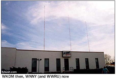 You can pull up to this site now without being greeted by a rusty barbed-wire fence; in fact, the newly stuccoed building greets the world with big picture windows through which you can clearly see the Harris DX50 transmitter and phasing units inside. (You can see the view below..) And you've got to love WADO's trademark Statue of Liberty logo, too! (Not to mention the flagpole that continues to fly from the top of the building...) The small building off to the left in this picture has a sign on the door that reads "Netmio," which is, if we recall correctly, the on-line arm of Hispanic Broadcasting's stations. The only real surprise here is that HBC hasn't yet taken advantage of the opportunity to use its new tall tower as an auxiliary site for WADO's sister FM, WCAA (105.9 Newark), as several other nearby AM facilities have long done. ![]() ![]() ![]() ![]() The last remaining vestige of the "old" WADO sits at the east side of the site: tower number two, which has been here for years and remains part of both the day and night arrays. But WADO isn't the only radio station in this part of the New Jersey Meadowlands, not by a long shot. Less than a mile to the east down Paterson Plank Road sits a three-tower array with its own long history in New York radio. The station on 1380 moved here decades ago as WBNX, one of several ethnic operations at the upper end of the dial. It became WKDM in the early 1980s, and that's the call it was using when I stopped by in 1998 to take the picture shown above. It still looks the same from the outside today, but things have changed dramatically inside. Under new owner Mega, the station changed calls last year to WNNY, "Noticias Nueva York," and today programs a news-heavy Spanish format to New York City from studios in Manhattan. (The WKDM studios were, for many years, located out here in New Jersey.) There's also a new tenant in this building: Radio Unica outlet WWRU (1660 Jersey City) uses these towers as well, having moved from its original home at the WJDM 1530 tower down in Elizabeth.