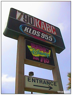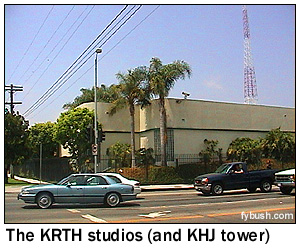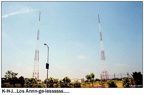 A good ballgame and a good night's sleep later, we headed south in preparation for a weekend down south in San Diego - but not without catching a few more sites on the way. Stop one: an homage to the legend that was "Boss Radio," the legendary KHJ at 930 on the dial. Back in the heyday of the Bill Drake top-40 format, the KHJ studios were next to the Paramount lot on Melrose (still home to the former KHJ-TV, now KCAL-TV), but even then, the 5,000 watt signal emanated from these two towers on Venice Boulevard. KHJ's Boss Radio days came to an end years ago, with 930 flipping to an FM simulcast as KRTH(AM), then to Spanish under the calls KKHJ - but a couple of years ago, KKHJ's owners persuaded the FCC to let them return to the heritage three-letter call (their argument: "K-K" in Spanish is pronounced "Ka-ka," which is a euphemism for you-know-what!), so this site is once again just plain KHJ. And while the format is nothing like it was, there's still a connection here: right next door to the towers, KRTH-FM (101.1) still maintains its studios, pumping out many of the same tunes that made KHJ great. (They call them "oldies" now, of course...)