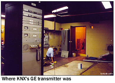 In its last days, the GE had been a backup to a backup, playing third-string to a Continental 316 for primary backup use and the Continental 317 that was serving as KNX's main transmitter (and now serves as the primary backup, with the 316 as the fallback unit.) When we pulled up at the City of Torrance park that surrounds the KNX site (CBS donated much of the land around the tower to the city a few years back, and it's now approached on a series of footpaths that surround softball fields in the park), the GE had already been hauled away, with the Harris due to arrive within a few days.