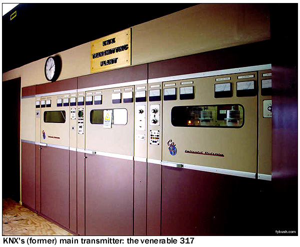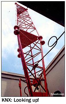 For whatever reason, the DA was not a success (unlike its cousins on the East Coast at WBZ and on the Gulf Coast at WWL), and KNX was back to non-directional operation in the sixties, just in time to become one of L.A.'s two all-news stations (we'll see the other one later in our tour.) There's still a second tower at the KNX site, but it's strictly for auxiliary use these days.
