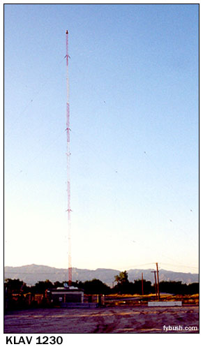 April 3-17, 2002The Sticks of Sin City![]() Think of Las Vegas, and you probably come up with a mental image of the Strip, flashing neon, slot machines and showgirls - right? But there's a radio market here, too, and that means interesting sticks in the desert soil. We snapped these pictures a year ago, while in town for the NAB convention; if you're headed for this year's convention, as we are, you might see a few of these on your way around Vegas this year. ![]() We began our visit to Las Vegas on the road, driving in from the north on I-15 after a visit to Zion National Park, St. George, Utah and the magnificent drive through the Virgin River Canyon in northwest Arizona, and that meant that our first sight of Las Vegas radio came about 20 miles north of the city, where US 93 splits from I-15 to head north through the barrenness of eastern Nevada on the way up to Ely. That's where KXNT 840 sits, with five towers just south of 93, a mile or so off the exit. This station traces its heritage back to the old North Las Vegas signal on 1410 kHz, KVEG, which was granted a construction permit in the eighties to move down to 840 with 50 kW day and 25 kW nights. Somewhere along the line, the 840 CP and the KVEG calls were sold, 1410 stayed on the air as KFMS(AM), and 840 made its debut in the late eighties as KVEG. In 1996, it went talk as KXNT, and so it remains today under Infinity ownership. Head south into town, and I-15 takes you towards Nellis Air Force Base. Look to the east as you drive, and you'll see the five towers of the other North Las Vegas AM, KSFN 1140. This was the old KLUC, the top-40 station in the valley. When that format migrated to the FM dial (KLUC-FM 98.5 still plays the hits in town, in fact), the AM side began a long progression of formats, including AC (KMJJ), very hard rock (KRSR, "The Crusher"), tourist information (KXNO, "Casino Radio"), sports (that's where the "KSFN" calls came from), a year or so of 50s oldies, and now a general talk format as a sister station to KXNO.