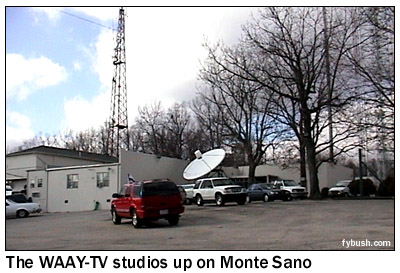 The WAAY calls have a distinguished history in the market; they were on radio for decades at the 1550 spot on the dial, as Huntsville's big AM top-40 voice well into the early eighties. WAAY radio eventually went dark and lost its daytime transmitter (and studio) site on Memorial Parkway in the heart of town, and 1550 later returned with a less-stellar signal from a site far to the north of town that was originally used only for a very directional night signal on 1550. It's now WLOR, doing R&B - and has no relation at all to WAAY-TV. The TV station does operate an Internet service provider, which explains why many Huntsvillians have addresses that end in "hiWaay.net."