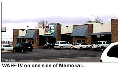 Next door to WAAY is the transmitter of Huntsville's CBS affiliate, WHNT-TV (Channel 19), owned by the New York Times. This is another tall tower with a shorter radar tower next door - and you've got to love the very old lettering on those satellite dishes in front of the transmitter shack! But let's head back down the mountain for now and see what downtown Huntsville has to offer on this late Sunday afternoon, shall we? Memorial Parkway is a divided highway that runs north and south through town, carrying plenty of broadcast properties even in the absence of the WAAY radio facility that used to sit here. We get there by way of Governors Drive, one of the east-west arterials - and just a block or so from the Memorial Parkway overpass, we find the single tower of Clear Channel talker WBHP (1230) and the former studio building for it and country WDRM (102.1), which now make their studio homes over in Decatur, where WBHP simulcasts with WHOS (800). ![]() ![]() Just north of I-565 is a former bank building (complete with a drive-thru window!) that now houses studios for WAHR (99.1), WRTT (95.1) and WLOR (1550). Keep going north on Memorial and you're into TV territory. On one side of the street, in a landscape filled with shopping malls and retail sprawl, is the WAFF studio; on the other is the studio of Fox affiliate WZDX (Channel 54, with a tower south of Monte Sano that we never did get to.) ![]() ![]()