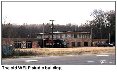 Downtown itself is nothing much to write home about, and we don't even bother with the other station on Holmes, classic country WTKI (1450), which later changed to advice-talk WHOH ("Heart of Huntsville" or something like that.) Instead, we head for the northwest corner of the city, looking for the last two AM stations in town. WEUP (1600) was already familiar to us through airchecks of its urban format, complete (back in the day, anyway) with shouts of "we-UP!" Today, WEUP has sprouted a mini-media empire, with the AM side simulcast on expanded-band WEUV (1600) and outlying WHIY (1190 Moulton) and a harder-edged urban format now playing on two rimshot FMs, WEUP-FM (103.1 Moulton) and WEUZ (92.1 Minor Hill TN) - and it comes out of a distinctly funky 50s-style building up on Jordan Lane, aka Alabama 53. ![]() ![]()
