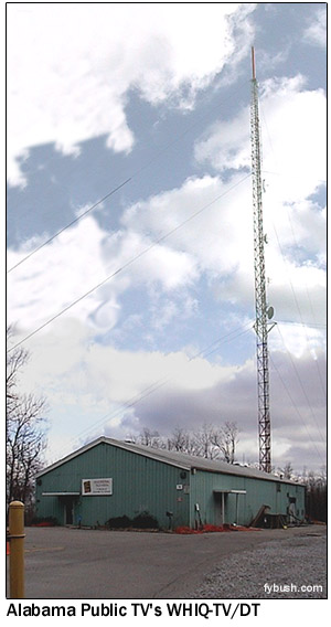 Shown at right is the easternmost of the big ones, down a short side road from the boulevard. This stick is home to Alabama Public Television's WHIQ (Channel 25) and WHIQ-DT (Channel 24), as well as some Huntsville public school microwave facilities, it seems.