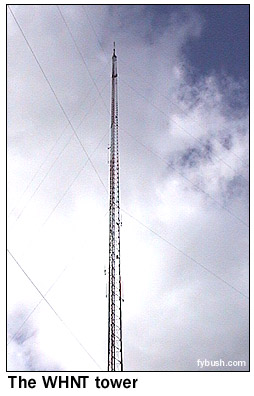 Keep going on Jordan Lane, as we did, and turn east on Stringfield Road and you'll come to three towers of daytimer WDJL (1000), which now does gospel but once challenged WAAY for the top-40 crown under the calls WTAK. (The calls live on at Clear Channel classic rocker WTAK-FM, 106.1 in nearby Hartselle...) Continue down Stringfield, turn left on Pulaski Pike and then left again on Drake Mountain road and you'll end up on a plateau overlooking town, amidst farmland and dirt roads and several FM towers. One carries country giant WDRM (102.1), another is home to AC "Star 99" WAHR (99.1) and Bible Broadcasting's WYFD (91.7, licensed to Decatur). (Also in town, though we didn't get to its studios and transmitter at Alabama A&M University, is a well-known set of New England calls. WJAB, late of Portland, Maine, is now on 90.9 in Huntsville doing jazz and blues for the public radio crowd, which it shares with Alabama Public Broadcasting's WLRH, 89.3 from the University of Alabama-Huntsville.) Just 90 minutes or so after we started the tour, we were done - and off to meet fellow DXer Tim Hendel for dinner!