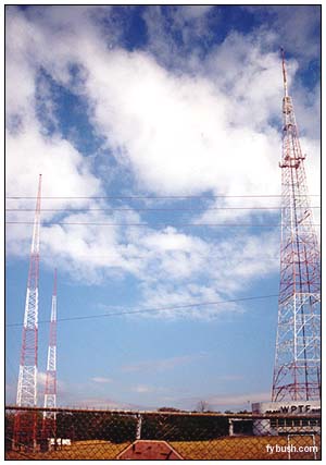 towers of WRAL-TV 5 and WPTF-TV 28, the latter just three years