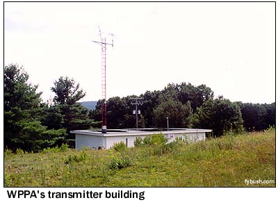 On either side of that Route 61 slope are hilltops crowned with AM towers. To the east sits WPAM (1450); to the west, on a normal day, you'd see the five towers of WPPA (1360), which usually operates with 5000 watts by day and 500 watts at night.