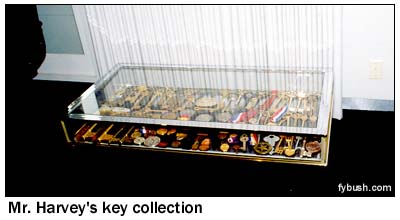 This utterly unassuming room on the 16th floor is, we believe, the most listened-to radio studio in the nation, for it's here that Paul Harvey speaks to America and the world three times daily. It doesn't get much simpler, does it? Two Electro-Voice RE20 mikes, a monitor speaker and the clock on the wall pretty much sum up the gear, and the decorations are limited to a glass case on the floor that holds the dozens of keys that Mr. Harvey has been given to cities and towns around the country.
