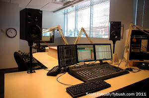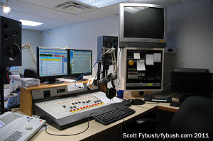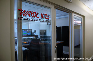 Everything else in this big cluster, with studios arrayed all along the western wall, came from Clear Channel in 2004: talk WGBF (1280 Evansville), the market’s oldest station; rock WGBF-FM (103.1 Henderson KY); classic hits WJLT (105.3 Evansville) and top-40 WDKS (106.1 Newburgh).
