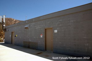 By the time we made our visit three and a half years later, the damage had mostly been cleared away, and the Gibraltar site had been largely rebuilt. From the turnoff on Gibraltar Peak Road, the road from the gate drops sharply down into a saddle before rising up again around a hairpin that leads to the transmitter plateau up here. KDB sits alone at the north end, and in the center of the site there’s a new concrete-block transmitter building that appears rather more fireproof than its ramshackle wooden predecessors. The new building appears to have mostly two-way tenants inside, from what I could tell.
