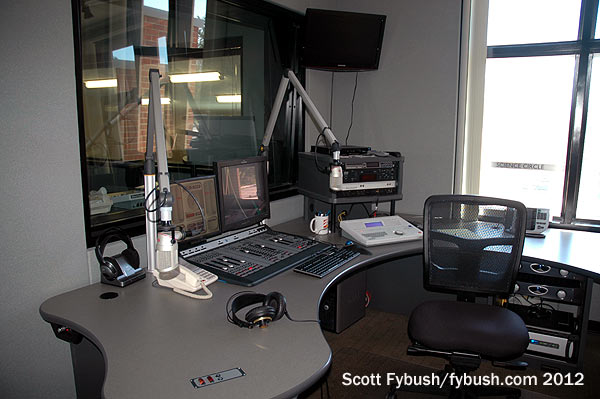 Upstairs, KCLU’s new digs are compact but efficient: there’s a main air studio that doubles as an interview space, another production booth adjoining it, and a newsroom, which was a much-desired feature of the move.