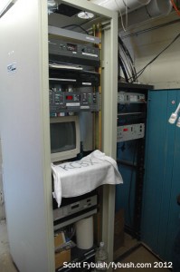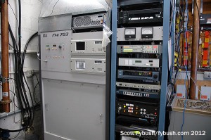 To the left of the door, a bunch of lower-powered signals come from little transmitter racks all lined up in neat rows extending back into an alcove off the main transmitter room. KSBX is here, as are the two boosters at the site, KDAR-1 (98.3), a powerful booster of Salem’s KDAR (98.3 Oxnard), and KMRO-FM-2 (90.3), repeating KMRO (90.3 Camarillo). The remaining translators here include K210AD (89.9), relaying religious KLFH (89.5 Ojai); K218CP (91.5), a Calvary satellator relaying KAWZ from Twin Falls, Idaho; EMF’s K227BI (93.3), somehow relaying K-Love outlet KLVH (88.5 San Luis Obispo) notwithstanding KQSC right there on 88.7; and KCLU’s 4-watt translator, K272DT (102.3).