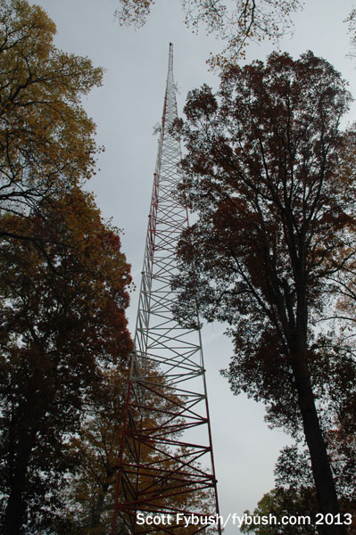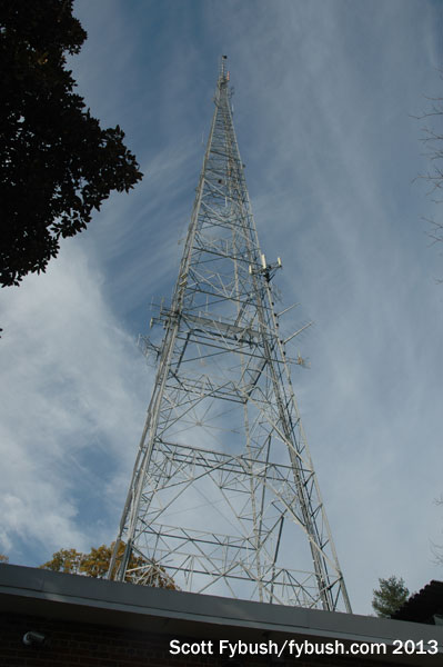WETA’s signal uses the antenna up top here fulltime, and it’s combined with two auxiliary users, WAMU (88.5) and WMAL-FM (105.9). WAMU reciprocates with a WETA backup at its own site over on the American University campus.