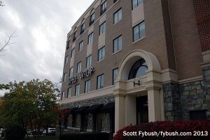 These days, 1050 shares this tower with Spanish-language WACA (1540 Wheaton), but the diplex is a later development: historically, WGAY (later WQMR) and its FM sister, 99.5 WGAY-FM, were located in a very distinctive Art Deco building on nearby Kemp Mill Road, since demolished and replaced by a shopping center. (There’s a great historical site for WGAY/WQMR here if you want to learn more about the early days of 1050.)