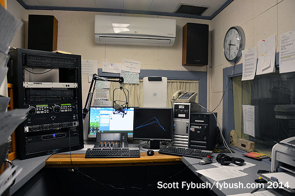 WHDL’s history goes back to 1934, and it’s spent most of its life out here on Route 417 in a tidy building that doubles as the AM transmitter site. Former owner Backyard Broadcasting did an extensive rebuild here (led by corporate engineer Tom Atkins) a few years ago, replacing a hodgepodge of older gear with a Logitek networked audio system, atill a rarity in a station this size. (When Backyard exited the business, WHDL/WPIG and its Elmira sister stations went to Community Broadcasters, joining that company’s existing Watertown cluster.)