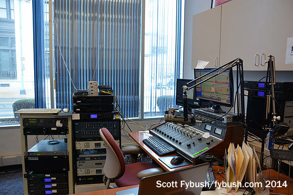 All those signals come from just a couple of studios arranged along the outside wall of the Colonial office, where ops manager Mat McCoy and the crew keep busy tracking local breaks on the music stations and news on WVTT.