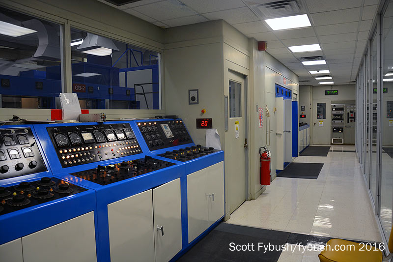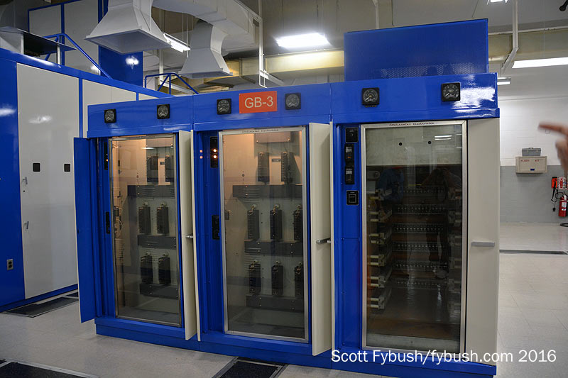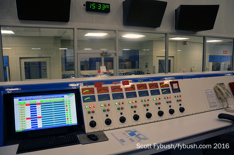 There’s a wide variety of transmitters to be seen here: on one side of the control room sit the GE transmitters that came here from the old GE site in Schenectady, N.Y. These units are constantly being tweaked and upgraded and now boast modern control and monitoring capability that the GE builders couldn’t have imagined back in the 1950s.