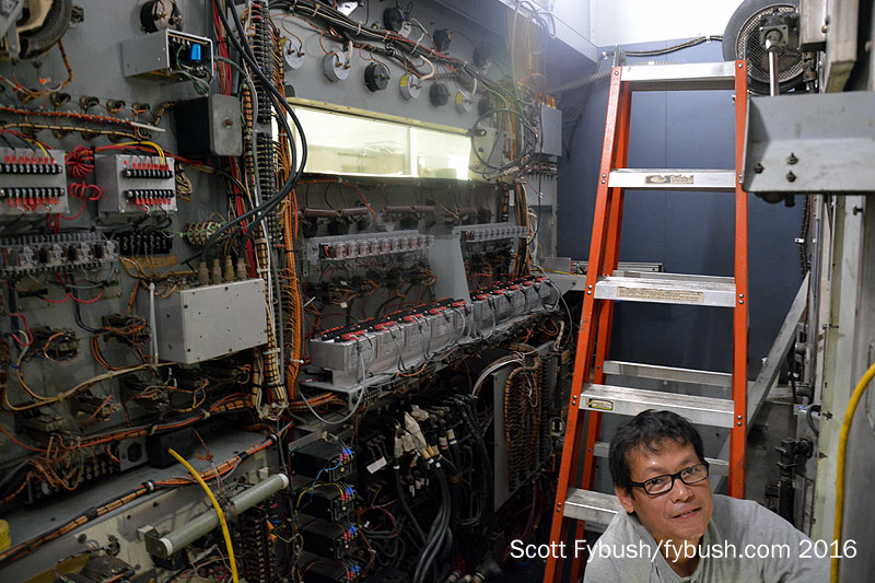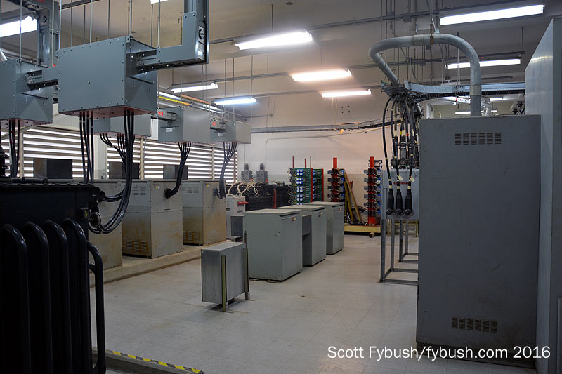 There’s mammoth power-handling capacity at the back of the building, including a recently upgraded service entrance and transformers for many of these transmitters. (The power bill here still tops $700,000 a year.)