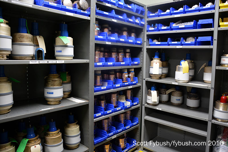 You can’t just call up BSW or Broadcasters General Store to get replacement parts for these huge beasts, and so this site has a massive stock of replacement parts and a climate-controlled room just for storing tubes, as well as a machine shop and a garage for maintaining the vehicles that work around this huge site.