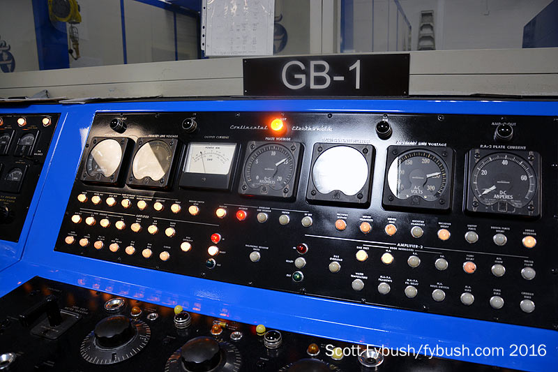 On the other side of the control room, it’s all Continental, with a recent paint job that now has the control panels and the glassed-in transmitters sporting a festive bright blue color.