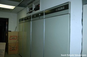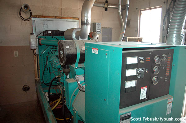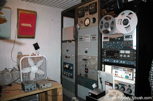To the right of the transmitter room, a narrow passageway leads down into an emergency shelter, where some rudimentary studio gear could (at least in theory) keep KKOB on the air in the event of the unthinkable; for lesser emergencies, there’s a hulking generator out back as well.