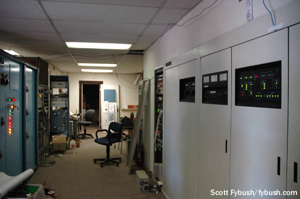 Several racks of STL and processing gear sit across from the DX50, along with the phasor for the night signal and another 5 kW transmitter that wasn’t connected to anything when we visited in April.