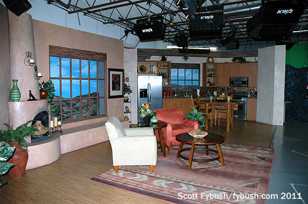 There’s a fairly sizable studio here for KOB’s extensive newscasts (they’re on the air at 4:30 in the morning, plus an hour at noon and the usual early-evening and late newscasts), and another studio down the hall for the “Good Day New Mexico” lifestyle show that airs in the late morning.