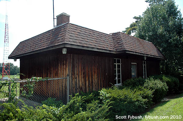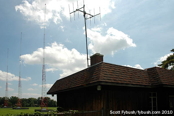 The wood siding and mansard roof make the transmitter building look something like a 1970s McDonalds, but underneath that renovation is the original transmitter building from 1935, when Governor James M. Cox uprooted WLBW 1260 from Oil City, Pennsylvania and moved it clear across Ohio to become Dayton’s second AM signal, WHIO.(It moved to 1290 in 1941 as part of the NARBA shift, at the same time WING relocated from 1380 to 1410.)