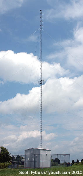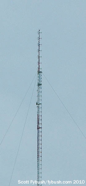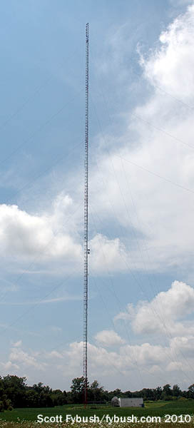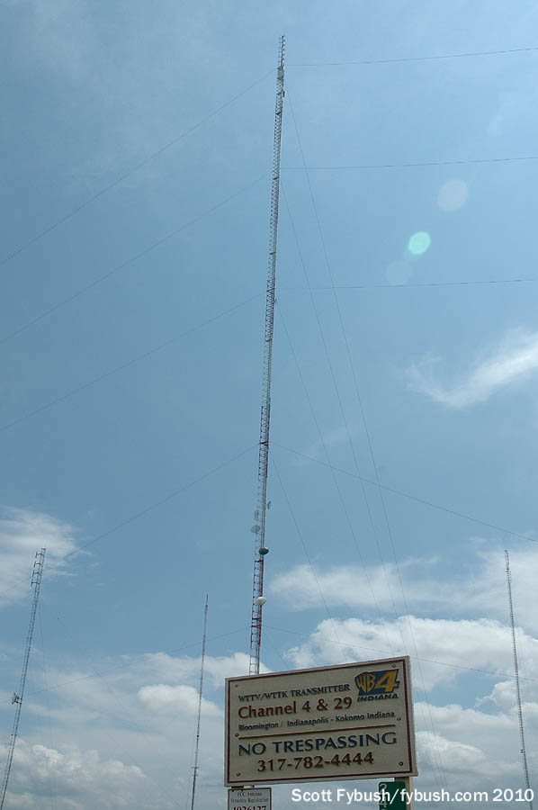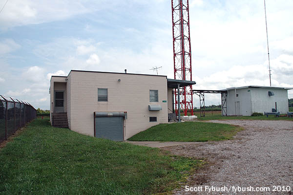 The 951-foot WIPX-TV tower (it’s the one just to the left of the big WTTV tower in the photo at the top right of the page) is also home to a newer noncommercial FM signal: WHZN (88.3 New Whiteland) signed on from here in 2009, broadcasting Christian contemporary music to the area south of Indianapolis. After our visit, “88.3 the Walk” was sold to Olivet Nazarene University, which also operates WONU up in Kankakee, Illinois, south of Chicago, becoming part of the “Shine FM” network based at WONU. (“The Walk” later reappeared at another signal in the region owned by Horizon Christian Fellowship; WWDL 91.3 Plainfield signed on in 2010 from a site west of Indianapolis and briefly simulcast with WHZN before WHZN was sold off.)