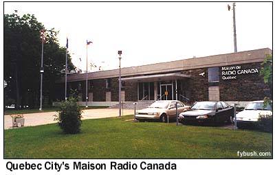 The city's commercial radio stations - all in French - were scattered among several office buildings. We found Radio-Canada out in Ste. Foy, in a low-slung building on Boulevard Laurier - and we noticed that the CBC's English newsroom (and headquarters of the "Quebec Community Network," serving all of the province's CBC transmitters outside Montreal) were in a separate facility in a Place d'Youville office building several miles away. This has recently changed, we're told, with all of the CBC/SRC operations in Quebec having just moved to a new facility in the heart of the city.
