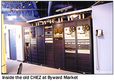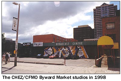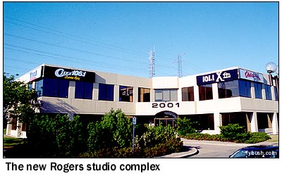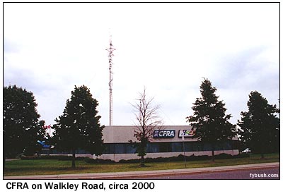 But things change, and as CHEZ and CFMO (later modern rock CIOX, "Xfm 101") merged in with oldies CIWW (1310) and country CKBY (105.3), which had been operating from a downtown skyscraper, Rogers ended up moving the whole cluster out to a suburban office park on the east side of town. Ironically, it's just around the corner from the Walkley Road office that had been home to CFRA and CKKL before they moved to CHUM's downtown MediaMarketMall, demonstrating some strange law of conservation of studio space that must only exist in Ottawa.