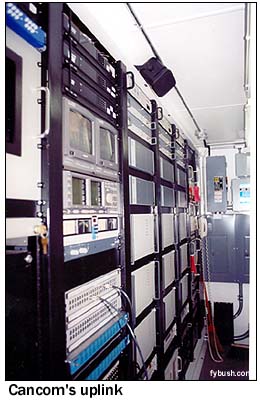 And just outside the gate sits one final surprise: a trailer next to the big satellite dish outside the gate is home to the Boston uplink for the Cancom satellite system that serves cable companies across Canada. So when you're sitting in Nova Scotia watching network affiliates from Boston, they're coming through those racks you see at the left.