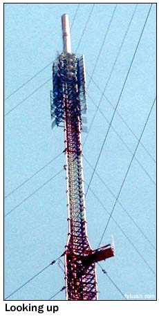 Therein lies a tale of DTV and some forward thinking on the part of Westinghouse (later CBS) in Boston, and in particular Bob Hess, longtime director of engineering for the WBZ stations, who recently relocated to KMAX in Sacramento. Realizing that DTV was on the way and that it would put quite a strain on the available space on the old 1200-foot tower, Bob undertook a remarkable task: replacing the top of the old tower, 229 feet of five-foot-face tower with 303 feet of seven-foot-face tower to the top of the 1957-vintage tower, all the while keeping the existing services on the air (except for WCRB, which moved across the highway to the FM-128 facility).