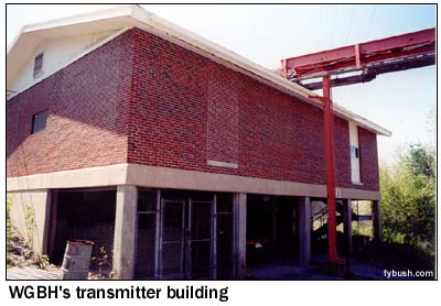 Each broadcaster at this site built its own transmitter building; WGBH's is the first one you see as you drive up the private road from Cedar Street (in fact, it's the only one easily visible from the security gate. Today, it sits partially empty, home only to the WGBH-TV (Channel 2) analog transmitter.