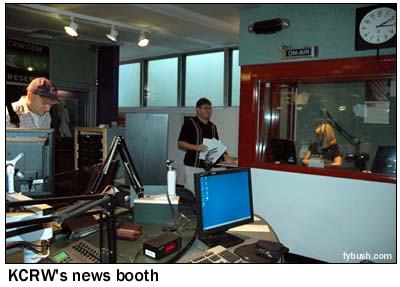 We stopped by KCRW on our whirlwind October visit to LA through the courtesy of Will Lewis, the station's management consultant and a veteran of Boston radio in years gone by. For a station that's become an important part of the public radio landscape, KCRW operates from relatively modest physical quarters, taking up most of the basement of the college's student center. Deep window wells bring some natural light down from above, but it's still a basement, albeit one with some awfully nice studios.