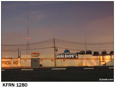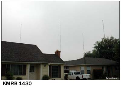 East of downtown, in Pasadena, there's a long and interesting history to the three towers just north of the 210 freeway. It was once Spanish-language KWKW 1300, one of the first Spanish stations in the market. In the early nineties, KWKW moved to the much better 1330 facility that used to be classical KFAC, and 1300 was sold off to become Asian-language KAZN. Today, KAZN is owned by Multicultural Broadcasting, as is the facility on AM 1430 a few miles to the south. Licensed to San Gabriel, this station was KALI for many years before becoming KMRB, which stands (of course!) for Multicultural Radio Broadcasting. Multicultural has a plan in the works for a big upgrade to this site that would boost KMRB's power substantially; KAZN would also move here, as would (if I'm recalling it right) the facility on 900 that used to be KGRB but now holds the KALI calls. And we'll close this week with the two AM stations licensed to Long Beach, south of downtown. KLTX on 1390 is the old KGER, and its towers are a few miles north of Long Beach alongside the 710 freeway in Paramount. The 1280 facility in Long Beach has been religious for years, first as KFOX (calls now heard on the 1650 in Torrance) and now as Family Radio's KFRN. We saw its two towers, behind an auto demolition warehouse in an industrial area near the Port of Long Beach, just as the sun was setting off to the west. (For a moment, we savored the triumph of having finally seen every AM site in Los Angeles County, but further thought on the matter reminded us that it's one awfully big county. We're still missing one AM station way, way up north in Palmdale, as well as KBRT 740, 26 miles across the sea on Catalina Island. Someday!)