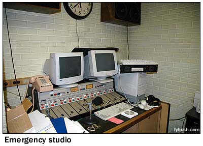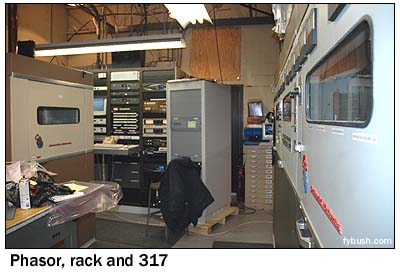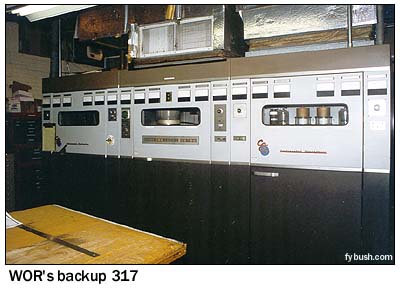 The era of fancy transmitter buildings had already passed by the time WOR built here; with no need for constant staffing, the WOR building is an unadorned brick rectangle without even a nifty illuminated sign like some of its neighbors in the Meadowlands. Come inside and you're looking at the back of the Continental 317C (modified to a 317C1) that's been here since 1973; walk around the side of the Continental (past the door to the emergency studio) and you can pretty much take everything in at one glance.