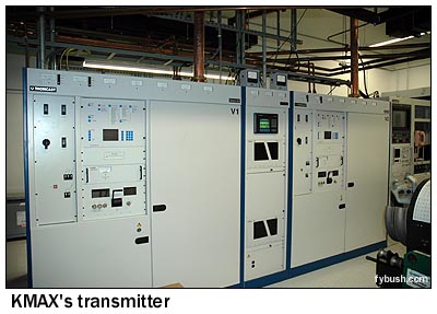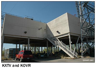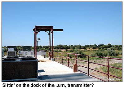 That explains the hoist at the edge of the platform surrounding the transmitter buildings, too: when it floods, the only way to get here is by boat, and if you need to bring a transmitter out here when it's flooded, you want to have a good way to get the box out of the boat and up to the platform. This site's main tenant, of course, is Hearst-Argyle's KCRA - but along the way, it also became home to the independent UHF signal on channel 31, which began in Sacramento as KMUV (the "Movie Station") and was KRBK by the time it moved out here. Today, it's Viacom-owned UPN affiliate KMAX-TV, and both its analog signal and its DTV on channel 21 call this site home. KCRA still doesn't have its DTV on from here - it's using the original candelabra for that, with plans to move the DTV (on channel 35) over to this site. Two other DTVs will call this home, too, when the transition is complete: KCRA's sister station, KQCA-DT (Channel 46) and Pax outlet KSPX-DT (Channel 48). KQCA's analog transmitter, on channel 58, is over at the KXTV/KOVR candelabra, and KSPX's analog, on channel 29, is way up in the Sierra foothills at the old channel 10 site.