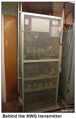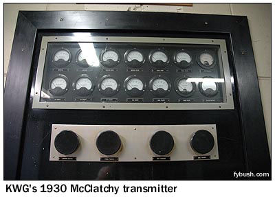But KSTN, for all its history, is only one of three AMs licensed to Stockton, and lucky for us, Paul also handles engineering duties for the others. Stockton's home to one of those three-letter calls that date from the earliest days of radio, and that facility is our next stop. KWG (1230) was licensed December 7, 1921, and it's called 2286 W. Weber Avenue home since at least 1930.