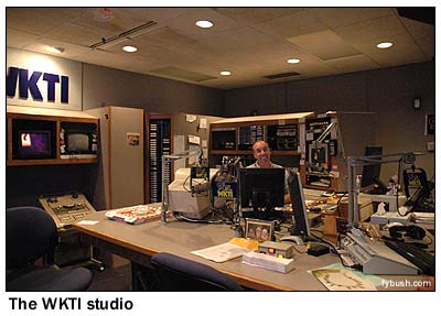 In the studio building, there are a lot of offices for the many stations that run out of here - standards WOKY, news-talk WISN (1130), oldies WRIT (95.7), classic hits "Brew" WQBW (97.3), urban WKKV (100.7 Racine) and country WMIL (106.1 Waukesha) - and a long row of studios running along the back wall, anchored at one end by WISN and at the other by WMIL. (Except for WISN, which needed more space for its talk format, the stations are all in order down the hall by frequency!) The music stations all have similar studios, and all but WOKY are live and local this Wednesday afternoon. We're joined here by Entercom's Chris Tarr - and in part two of our Milwaukee experience, coming next Friday, we'll show you his nearby studio and transmitter facility, plus more of Kent's transmitters - and we'll explore more interesting moments in Milwaukee's radio history, too.