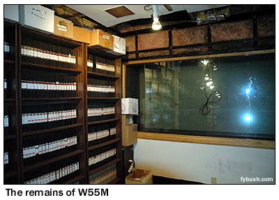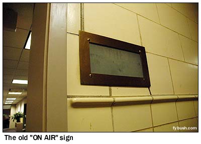 As we move back in the building, we move back in time, too. The original radio studios sat behind the auditorium, along tiled corridors reminiscent of an elementary school of that vintage. The offices of LMA partner WPXE (Channel 55), the Pax affiliate in town, occupied much of the space that was once the AM studio, with an old "on air" light in the hallway as a giveaway to the history. (WPXE moved out not long afterward, as Pax ended its LMAs with local stations all over the country.) All the way back in a corner, a studio window in a storage room is one of the few clues that this space was once home to WTMJ's FM studios. WTMJ was a pioneer in FM, putting experimental station W9XAO on the air in early 1940. By 1942, the station had become W55M, with programming separate from WTMJ and with its own 50 kW transmitter site in Richfield, Wisconsin. Like so many ambitious early FM operations, WTMJ-FM struggled with the transition to the 88-108 MHz band after the war, and with the focus on TV, WTMJ-FM signed off in 1950. It returned to the air in 1959, and after running automated for a while, by the seventies it was again a vibrant separate service from the AM, under the calls WKTI.