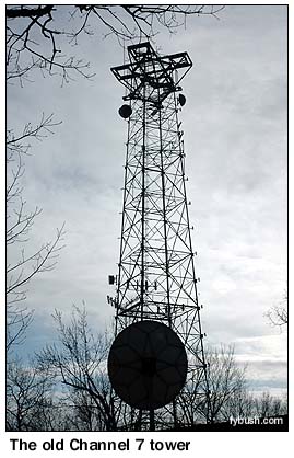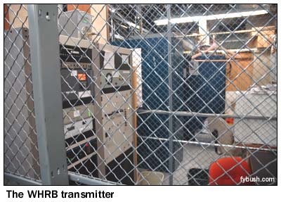 Eventually, the BE auxiliary transmitter that's been temporarily pressed back into main service in Medford will move here as well, and we'll have to come back and see it again once that happens. In the meantime, we take a quick look - through the cages - at the WHRB and WERS setups and at the nifty view of the South Bay interchange and Big Dig construction before following Chris north over the Zakim Bridge and up to the soon-to-be-former WFNX site overlooking Malden Hospital.