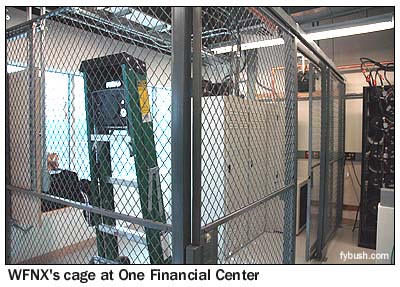 When we left you last week, we were heading north out of Quincy on a journey that would eventually take us from WJDA down there to sister station WESX up in Marblehead. But before we could get there, we wanted to make good on a promise to engineer Chris Hall that we'd see his new setup for WFNX (101.7 Lynn), atop Boston's One Financial Center office tower. On this Friday in March, WFNX was still transmitting from its old site above Malden Hospital, but it had been conducting testing from the One Financial Center site. (It would make the move permanently less than a month later.) Built in 1983, One Financial Center rises 46 stories and 590 feet above Boston's financial district, just a block or so from South Station. It didn't get its first broadcast tenant until 1991, when Emerson College's WERS (88.9) moved here from the Prudential Center, trading a few hundred feet of height for more power and considerably less expensive site rent. In 1995, WHRB (95.3) became the second radio tenant, improving its signal dramatically by moving from its low antenna atop the Holyoke Center in Harvard Square, which is now licensed as an auxiliary site for WHRB. And after many years of trying to put a better signal over its target audience - the college students and young adults who populate so much of Boston and Cambridge - WFNX has now joined them here in the packed transmitter room behind an unmarked door on the 44th floor, just down the hall from one of Boston's most prominent law firms, Mintz Levin.