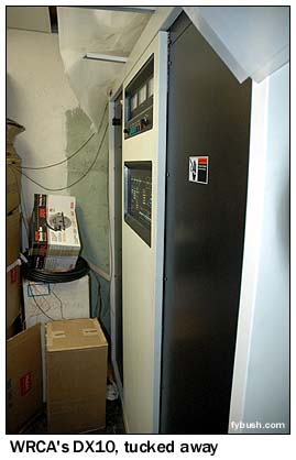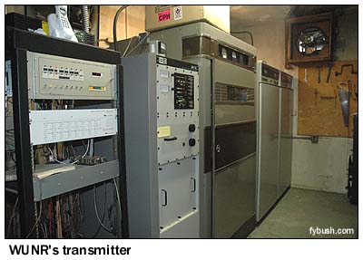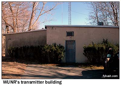 And that prompts an invitation from Grady to come get a "before" look at the WUNR site - after a nice deli lunch at Joan and Ed's, conveniently located in the Sherwood Plaza on Route 9 in Natick. (C'mon - do I at least get a free bowl of soup for that plug?) The upgrade and renovation at WUNR has been in the planning stages for years, and as a result, the existing facility is - how to put this delicately? - rather overdue for an overhaul. The little building on Saw Mill Brook Parkway once served as both transmitter site and studio for not only WUNR but former sister station WBOS (92.9), and to get to WUNR's row of racks and transmitters (a BE AM5E as the main, an old MW5 as the backup, and a nifty old Raytheon phasor), we pass dusty racks of really old automation gear and a long-disused studio. Very soon now, the AM5E and the phasor will be moved into a container behind the building, which will be gutted. Five new 199-foot towers will go up on the property, new 4MX25 transmitters will go in for WUNR (which will run 20 kW day and night) and WRCA (25 kW day, 17 kW night), and a new 4MX50 will go in for WKOX, which will be 50 kW fulltime. (The 4MX was an obvious choice because of its size - the zoning deal with the city of Newton prohibits any exterior changes to the transmitter building, so a small transmitter was needed to make everything fit inside.) Once the new towers and transmitters are completed, WUNR's old towers will come down, and a very long battle between the stations and the neighbors will, we hope, finally come to an end.