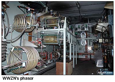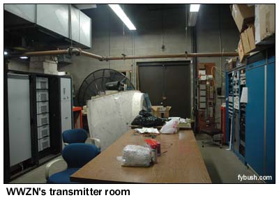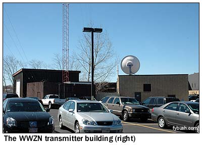 In this installment, we actually begin with one that will be around for a while, albeit probably not with the current calls and format. Having lived for some years in the RF shadow of what's now WWZN (1510 Boston), on Waverly Oaks Road near the Waltham-Belmont line, we thought it would be nice to actually see what was inside the transmitter building and at the base of the towers. On the final morning of our quick New England jaunt, our good friend Grady Moates, who has WWZN as one of his contract engineering clients, was more than happy to oblige, and so more than 15 years after first setting eyes on the towers, we can finally show you what's inside. The history, first, of course: 1510, historically WMEX, was operating as WITS when it moved to this site in 1981. The station had just won the rights to the Red Sox, and the team wanted its broadcasts on a 50,000-watt signal. At its existing site in Quincy, WITS ran 50,000 watts by day, but was required to drop to 5,000 watts at night to protect several other 1510 facilities in Nashville and Sherbrooke, Quebec. Even a quarter-century ago, land in the Waltham-Belmont area was expensive and hard to come by, and so WITS ended up putting its four 366-foot towers (199 degrees at 1510 kHz) close together in the back parking lot of what was then a brand-new business park at 411 Waverly Oaks Road. It would prove to be an expensive, and questionably successful, solution. Putting that much RF that close to the business park buildings required extensive mitigation measures, and the high field strength of 1510's directional signal to the east meant many residents of Belmont and Watertown still hear the station in their telephones and all over their cheap radios to this day. Giving up the salt-water path from the Quincy site meant 1510 traded excellent coastal coverage for a signal that covered somewhat less ground inland, even by day. And the 50 kW night signal, with its deep nulls to the co-channel stations, missed big chunks of the market, not only in the deep null to the west but also on the North Shore and South Shore.