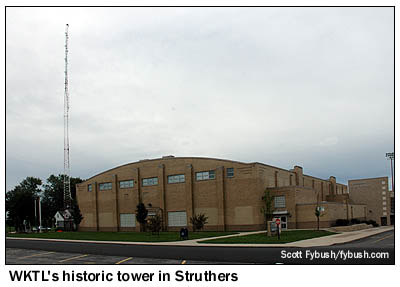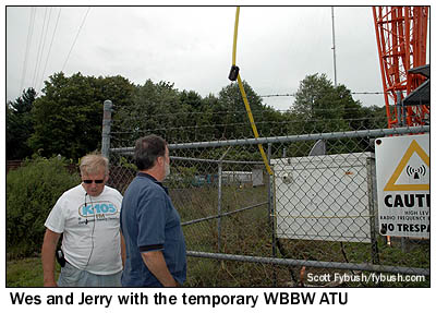 Such a jaunt took place over Labor Day weekend, 2006, as we headed to Akron, Ohio for this year's National Radio Club convention. In part one of our Youngstown visit last week, we visited several Clear Channel sites, including the Knox Street facility that's home to WNCD (93.3) and former sister station WBBW (1240). As we mentioned then, the tower that was being erected during our visit (and which has since been completed) is WBBW's third, replacing the 1967-vintage tower that has now been dismantled. But before that tower went up, there was an earlier WBBW tower, original to the station's debut in 1949. As with pretty much all the Youngstown-area towers of that era, it was a Truscon tower, Truscon being the local tower manufacturer. (Their factory still stands, though there's nothing there that shows it as having been the home of so much great steel over the years.) It was a perfectly good tower in 1967, just not tall enough for WBBW's FM signal - so it was dismantled and hauled to the nearby town of Struthers, where it was erected next to Struthers High School to become the support structure for WKTL (90.7), the high school radio station. And 40 years later, it's still there, still holding the WKTL antenna and still going strong. Now you know its history, too..and now we can move over to 4040 Simon Road, on the southeast side of Youngstown, to see Cumulus' ever-growing compound of studios and transmitters, in the company of longtime engineer (and jock) Jerry Starr and current chief engineer Wes Boyd.